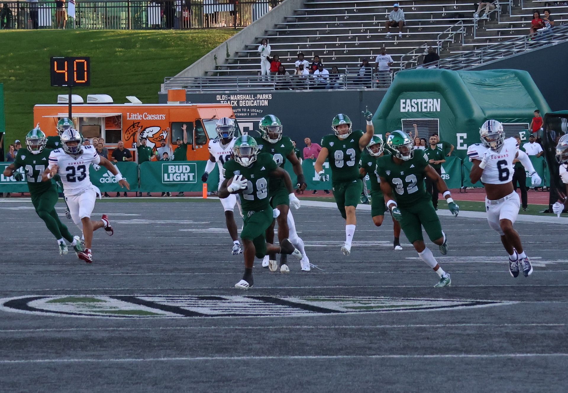 The punt return gave EMU a 16-0 lead before the end of the first quarter, and receiver Hamze El-Zayat showed what kind of speed was sidelined all 2022.