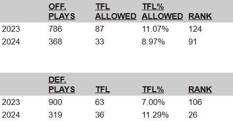 On the other side of the token, of course, is the percentage of plays that result in a loss of yards for the offense. This O-line is still trying to find its collective stride, but as far as rates go, the early returns have been a little better so far. Last year, EMU’s offense was 124th nationally in tackles for loss allowed (11.07%), but that percentage has gone down this year (8.97%) and the team is ranked 91st so far this year.